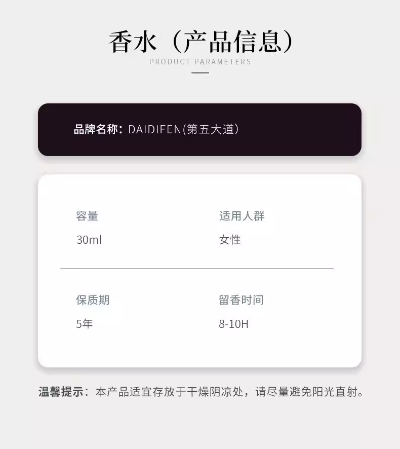 第五大道香水女士持久淡香高級約會正品官方旗艦店清新留香72小時
