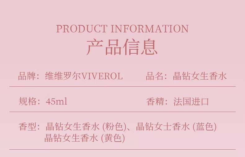 VIVEROL維維羅爾晶鑽系列女士香水持久留香清新自然
